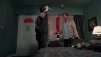 Meanwhile, Cody suggests to Norman that they beat Caleb up so that he will leave Norma alone. They go to the motel that Caleb is staying at, but Norman changes his mind and they leave. After her night out, Dylan and Norma get into an argument, and he correctly accuses her of using his birth to get away from Caleb. Norman overhears and goes back to Caleb's motel alone. In his "Mother" persona, "she" tells Caleb that "she" has been silent long enough and that he needs to listen to "her". "She" swings a knife at Caleb and when his uncle pushes him into a chair "she" remembers the rape and tells him that "she" was his sister and "she" had no-one to protect "her". Caleb pushes Norman to the ground and kicks him the chest before grabbing his belongings and leaving. Romero threatens drug leader Zane Morgan, and later sees his house burning down. Cody finds Norman in a trance in a coffee shop and drives him home.