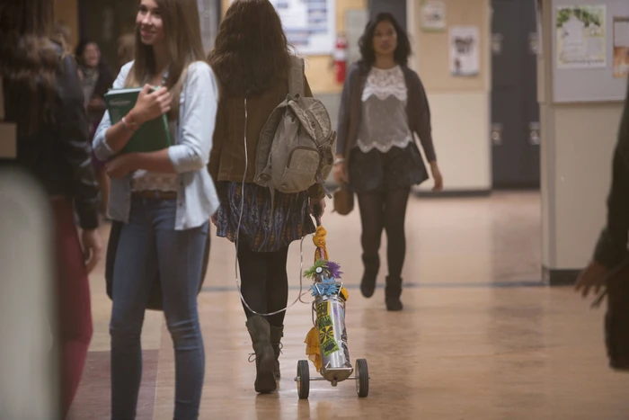 Before school the next day, Bradley Martin and several of her highly inquisitive friends meet Norman. Kennedy offers them all a ride to school in her car, in which Bradley sits in Norman's lap and tells him to call her with any questions he has about White Pine Bay High School. After language arts class, the teacher Blaire talks to Norman about his education and suggests he tries out for the track team.